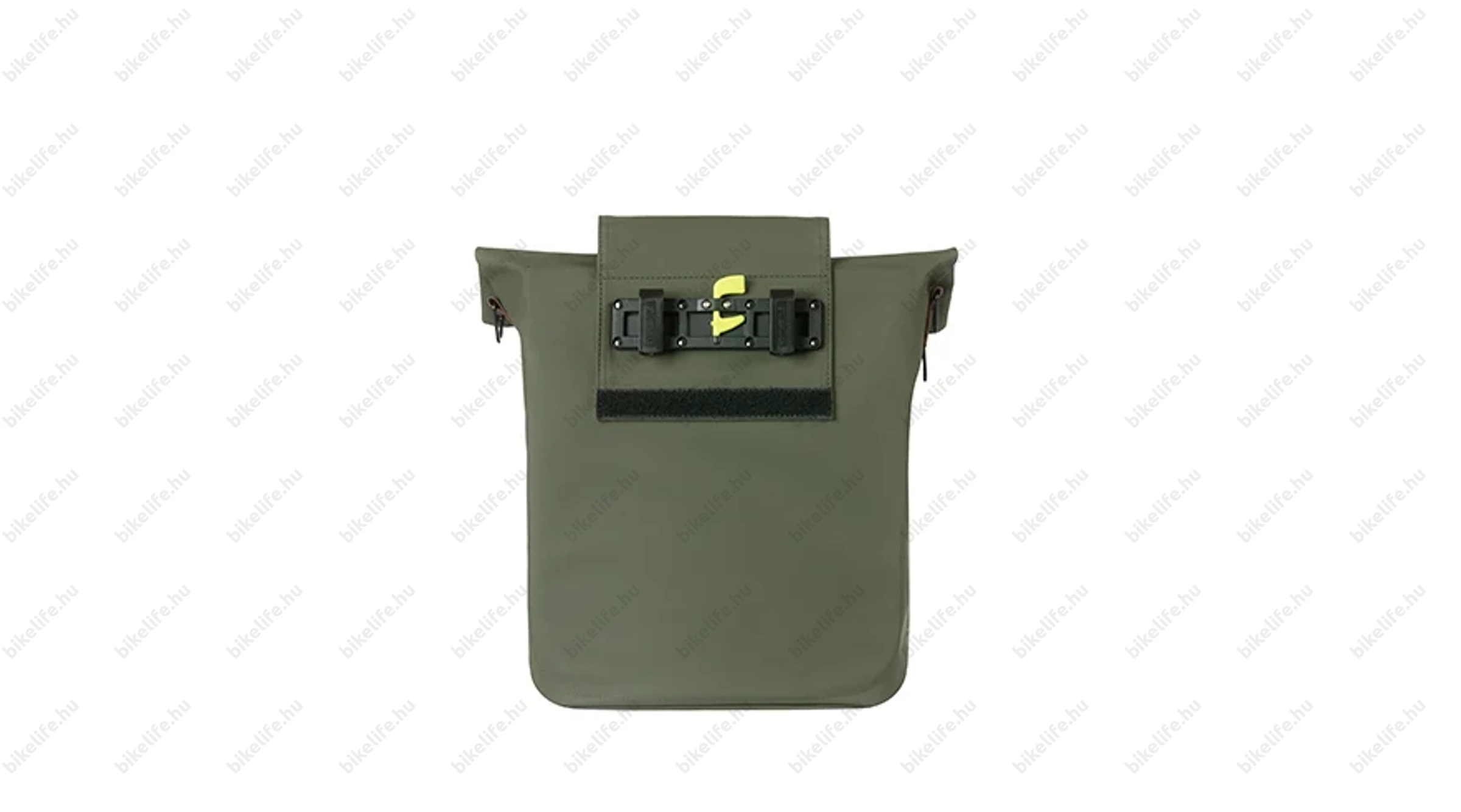 Hátsó csomagtartóra szerelhető, oldaltáskaként/válltáskaként is használható, 14-16 literes kapacitás, moha zöld színű