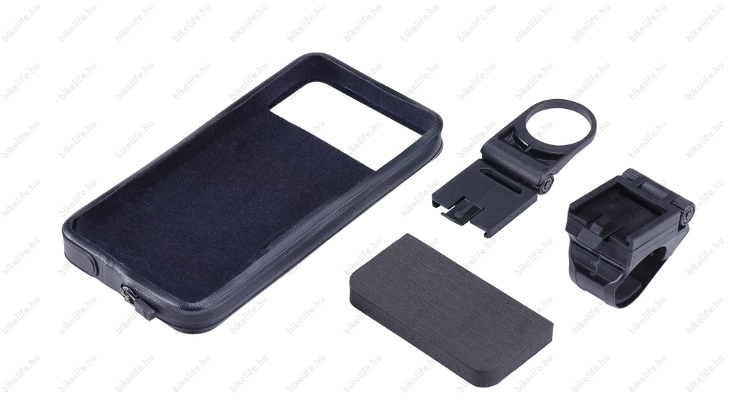 2 adapter jár a tokhoz, az egyikkel a kormányra/kormányszárra rögzíthető a tok, a másikkal az AH kupakra. Mindegyikre pillanatok alatt felpattintható, szögében állítható. A csomag tartalmaz még egy "hézagoló szivacsot" is, mellyel kitöltheted a felesleges helyet, ha kisebb a mobilod, mint a tok.