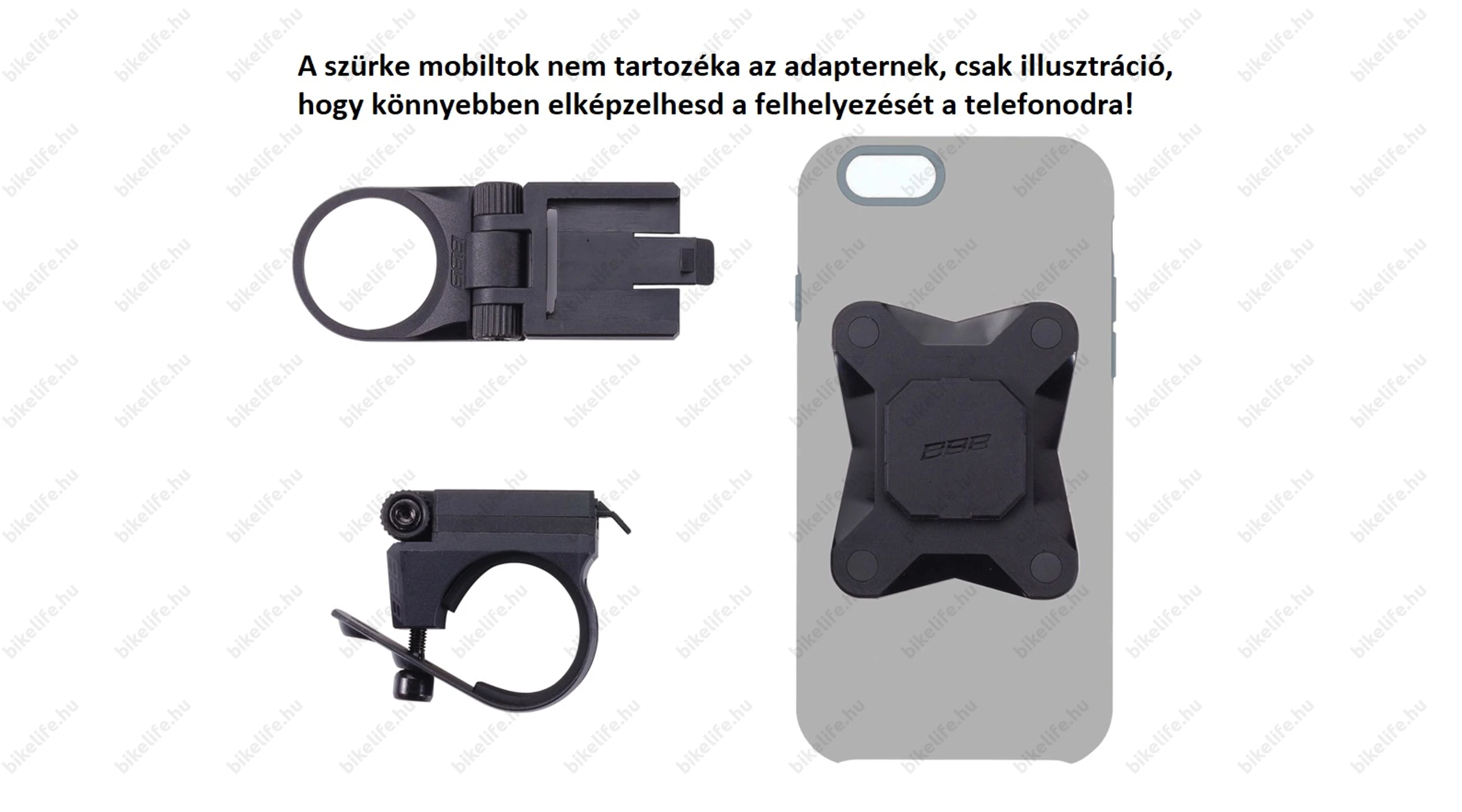 - A csomag tartalma: 1 db telefontokra rögzíthető adapter, 1 db kormányra rögzíthető adapter, 1 db használati útmutató, 1 db kormányszárra rögzíthető adapter, 1 db csiszolópapír és 1 db törlőkendő a tokra való könnyebb felhelyezéshez