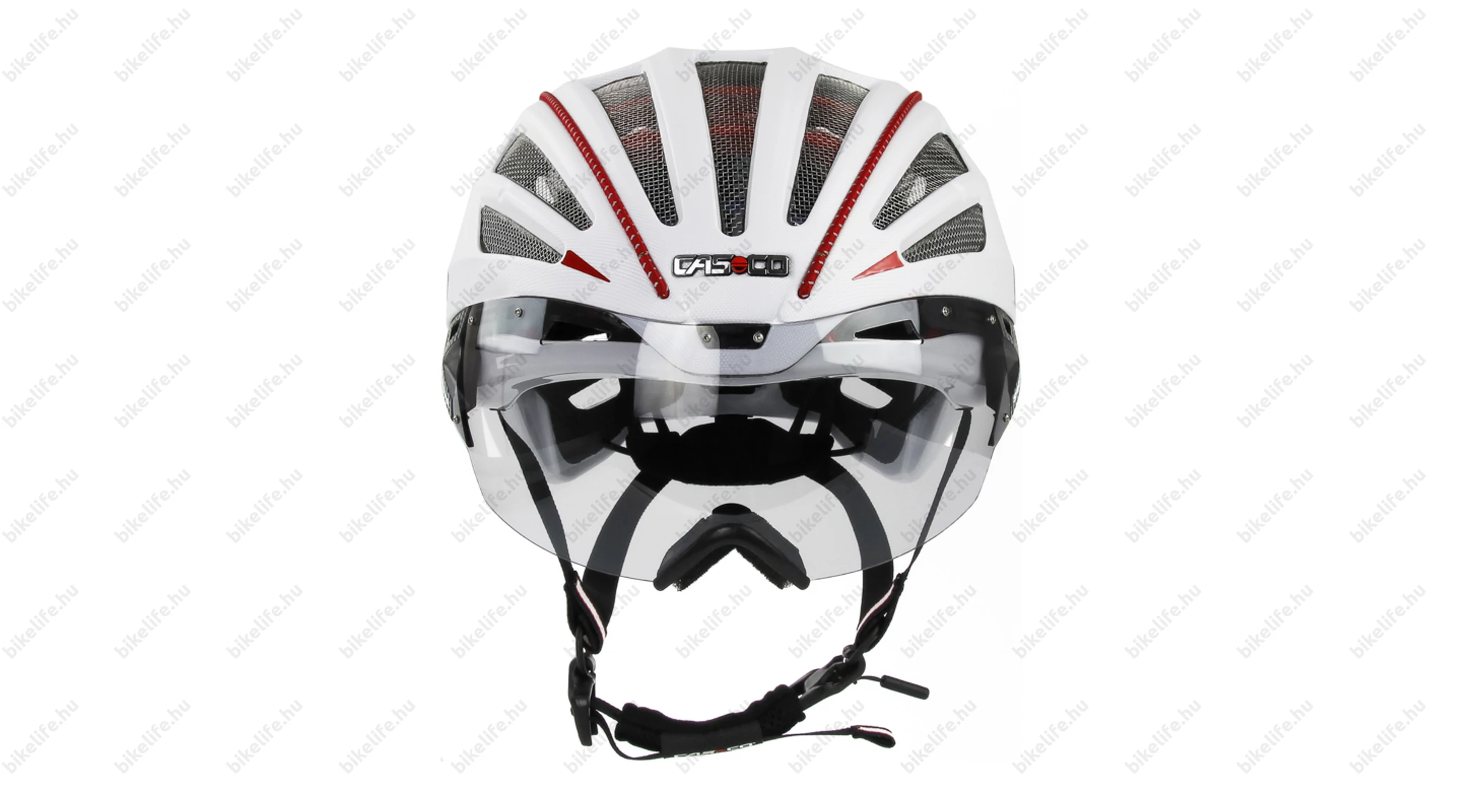 Fehér színű fejvédő biciklizéshez, triatlon és országúti használatra, Vautron lencsével, L méretben (59-62cm fejkerülethez)