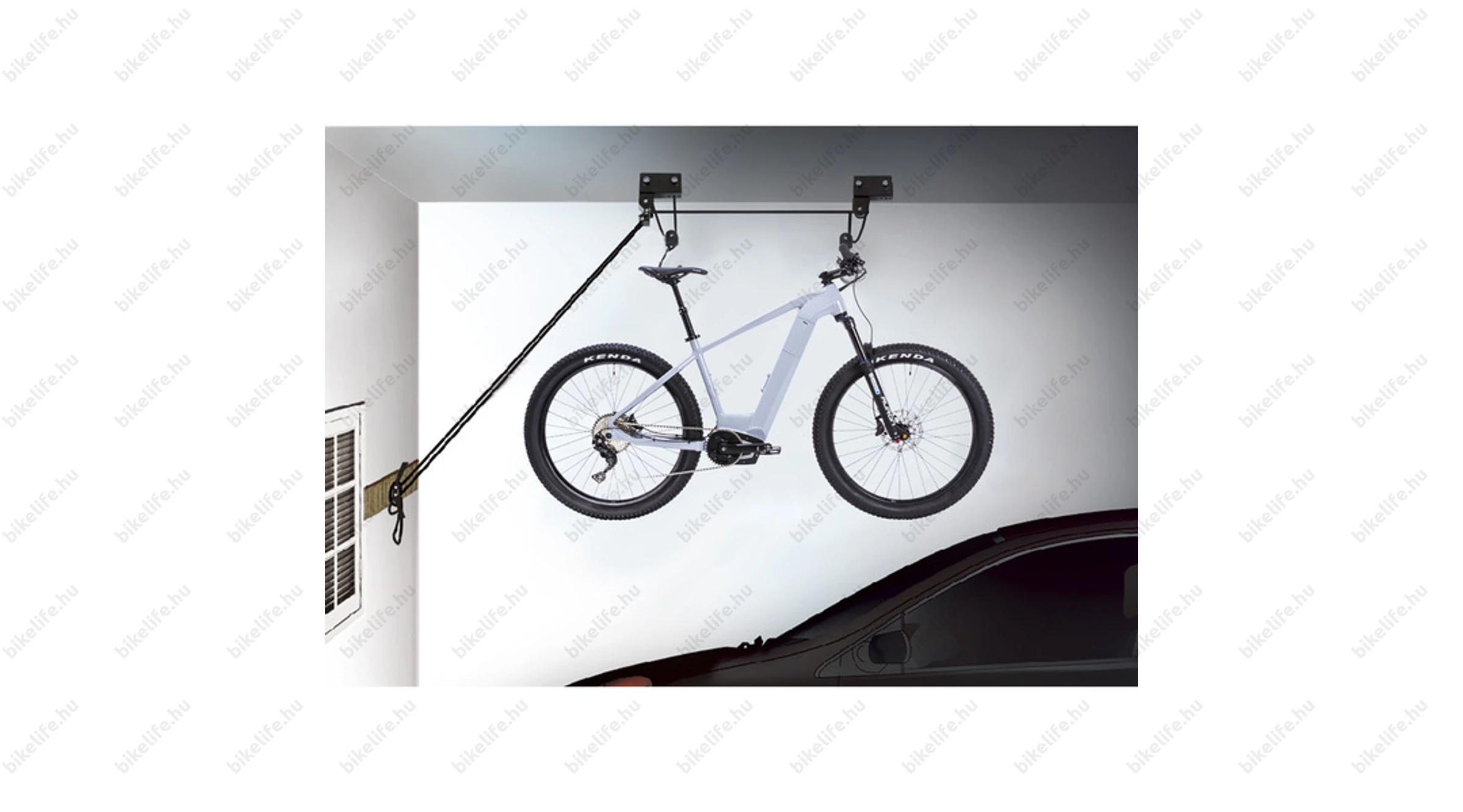 A kerékpár liftek nyújtják a legjobb megoldást, ha a legképtelenebb helyekre kell elhelyezni a kerékpárt. Ez a lift megnövelt teherbírással rendelkezik, hogy elektromos kerékpárodat is biztonságosan felakaszthasd rá.