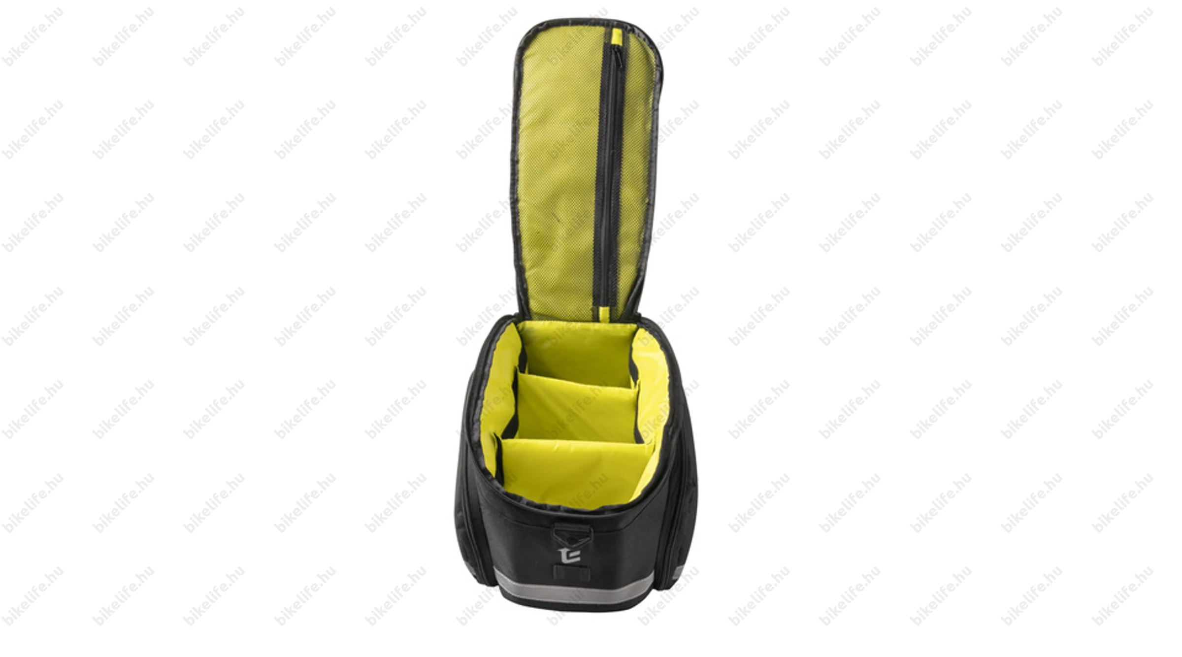 - Csatlakozás: 4 darab erős tépőzárral. Minden csomagtartóval kompatiblis. Azonban az oldalsó rekeszek használatához oldaltámasszal ellátott csomagtartó szükséges.