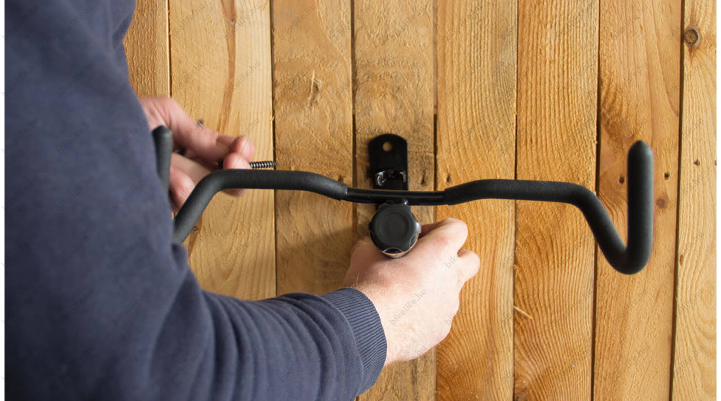 - A kerékpárt a váznál fogva, vízszintesen helyezhetjük el a falon.