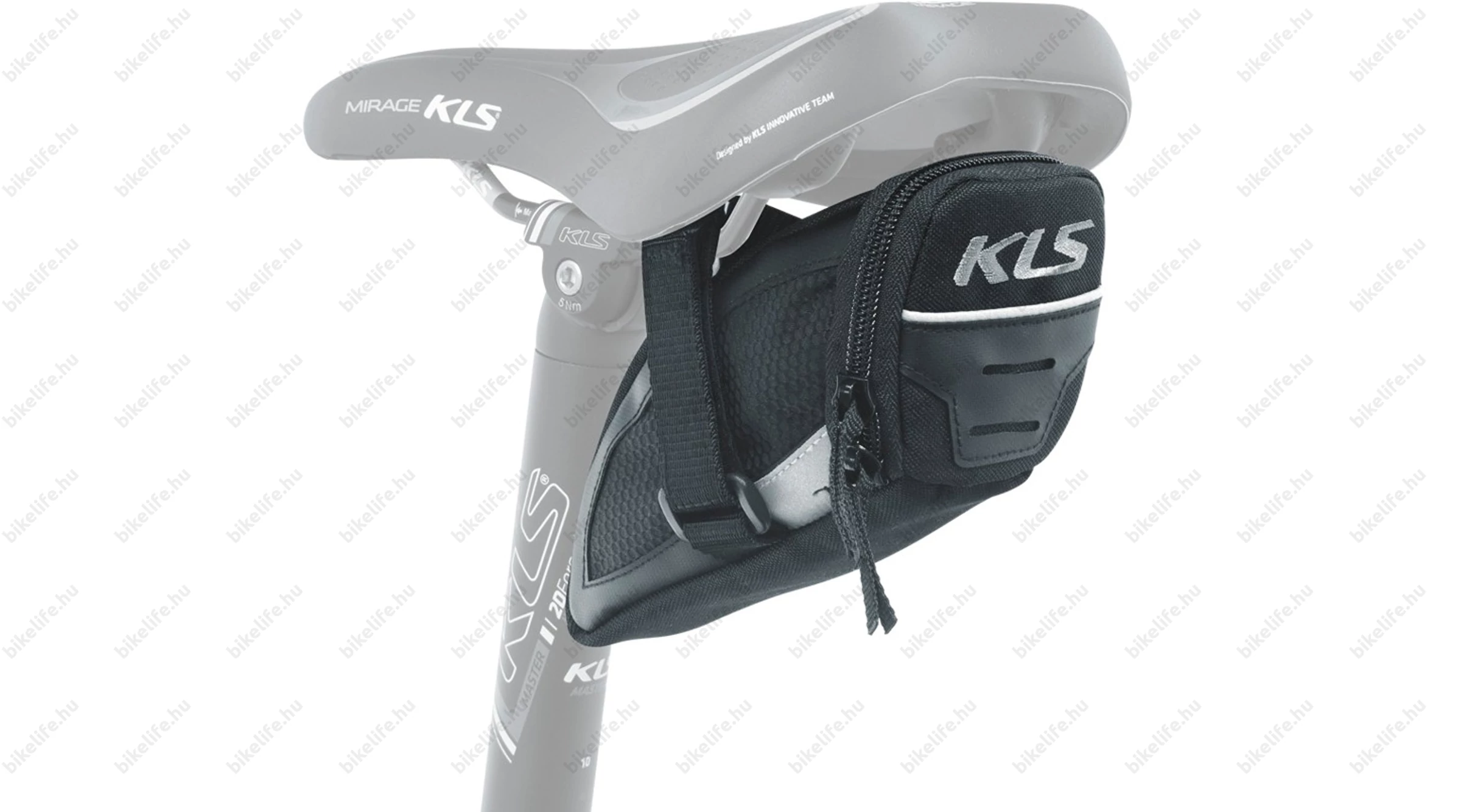 Igazán elegáns nyereg táska, mely 600D poliészter/ Poly honeycomb /Nylon 210D anyagokból készült. 2 darab cipzárral rendelkezik. A hátsó lámpát elhelyezhetjük rajta, találunk a felrögzítéséhez egy "fület". "Kúpos" kialakításának köszönhetően könnyedén a tenyerünkbe simul amikor levesszük a kerékpárról és magunkkal visszük.