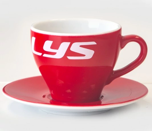 Kellys kávés csésze alátéttel 70 ml Espresso méret piros/fehér díszdobozban