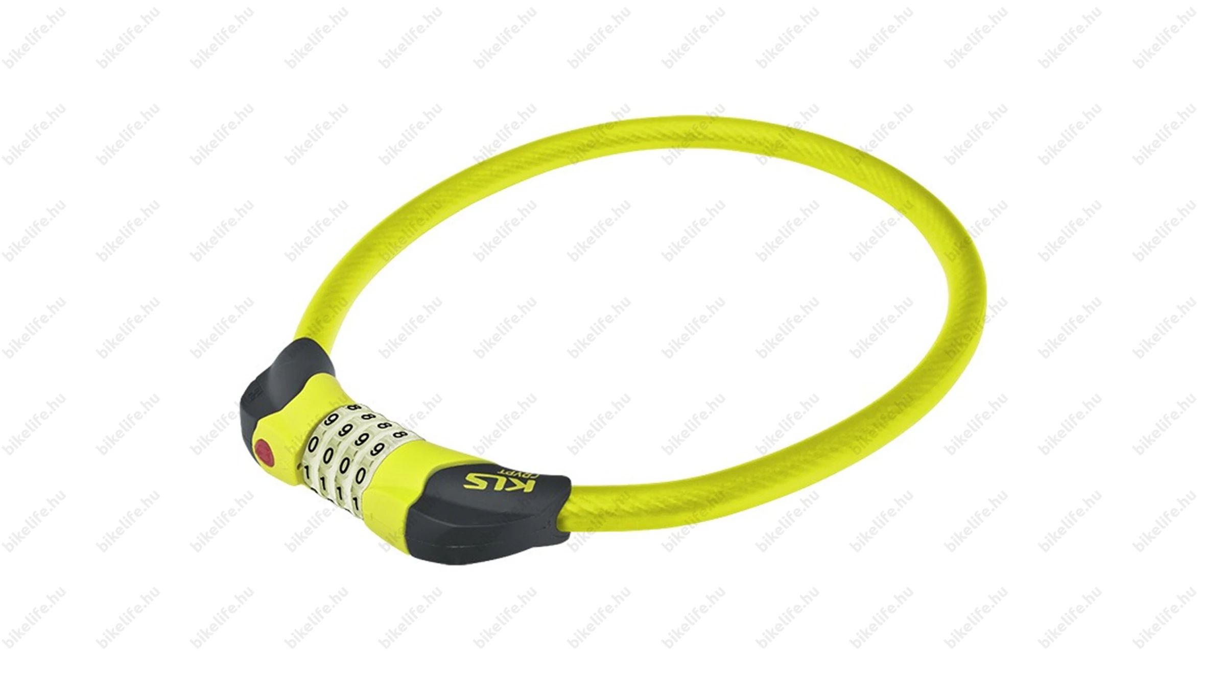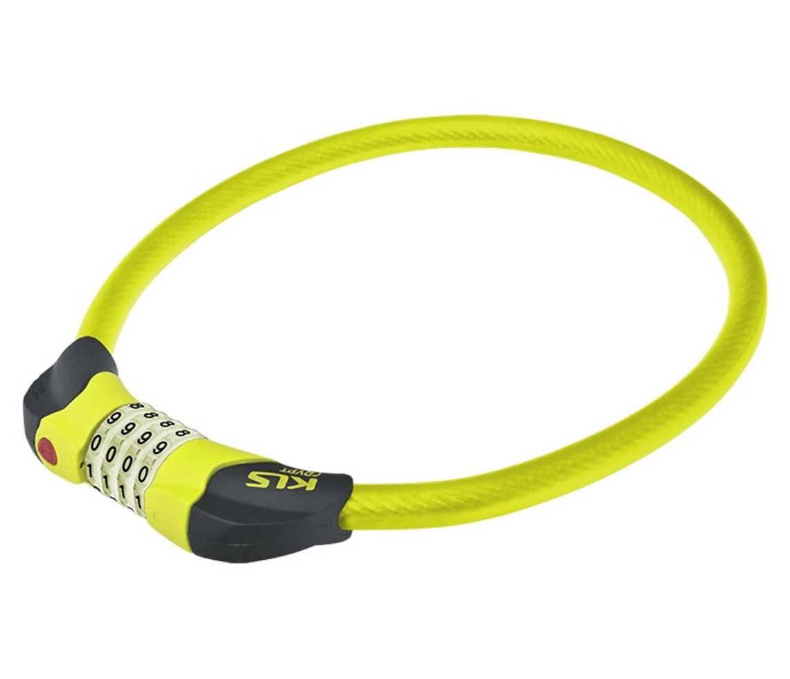 Kerékpáros sodrony lakat, 80 cm-es hosszúság, 4 jegyű számkombinációs zárrendszer, LED világítással, lime színű