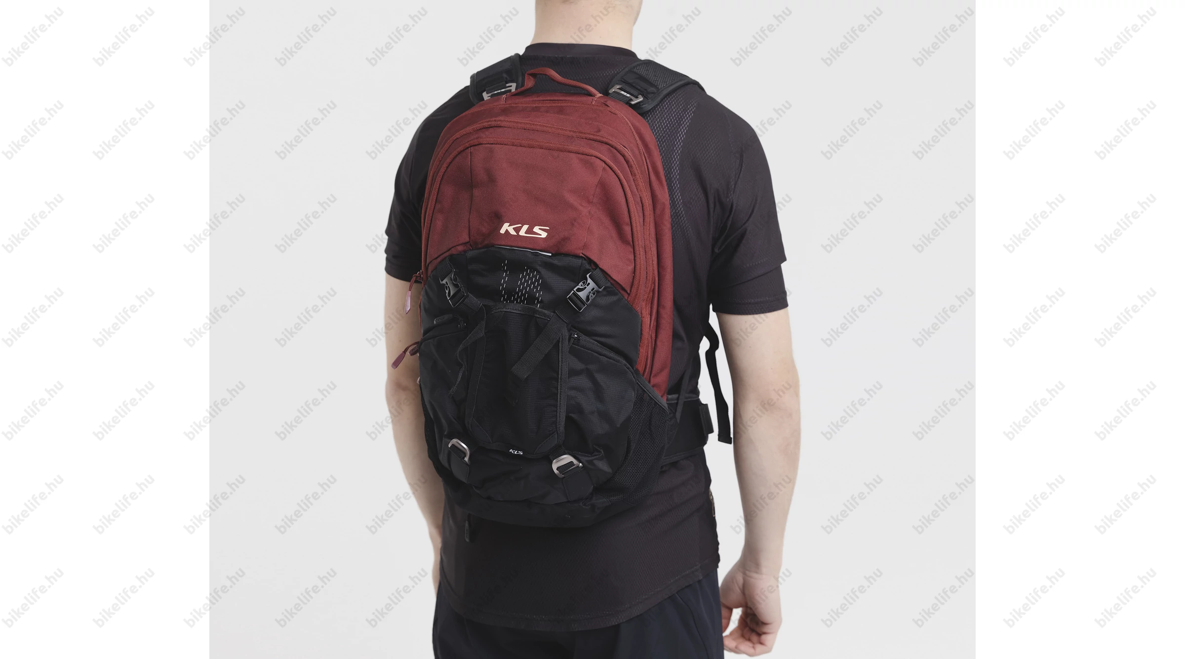 Kellys KLS Lane hátizsák 16L-es, italtartó zsák nélkül, esővédő huzat, protektor, bukó tartó, fekete/wine