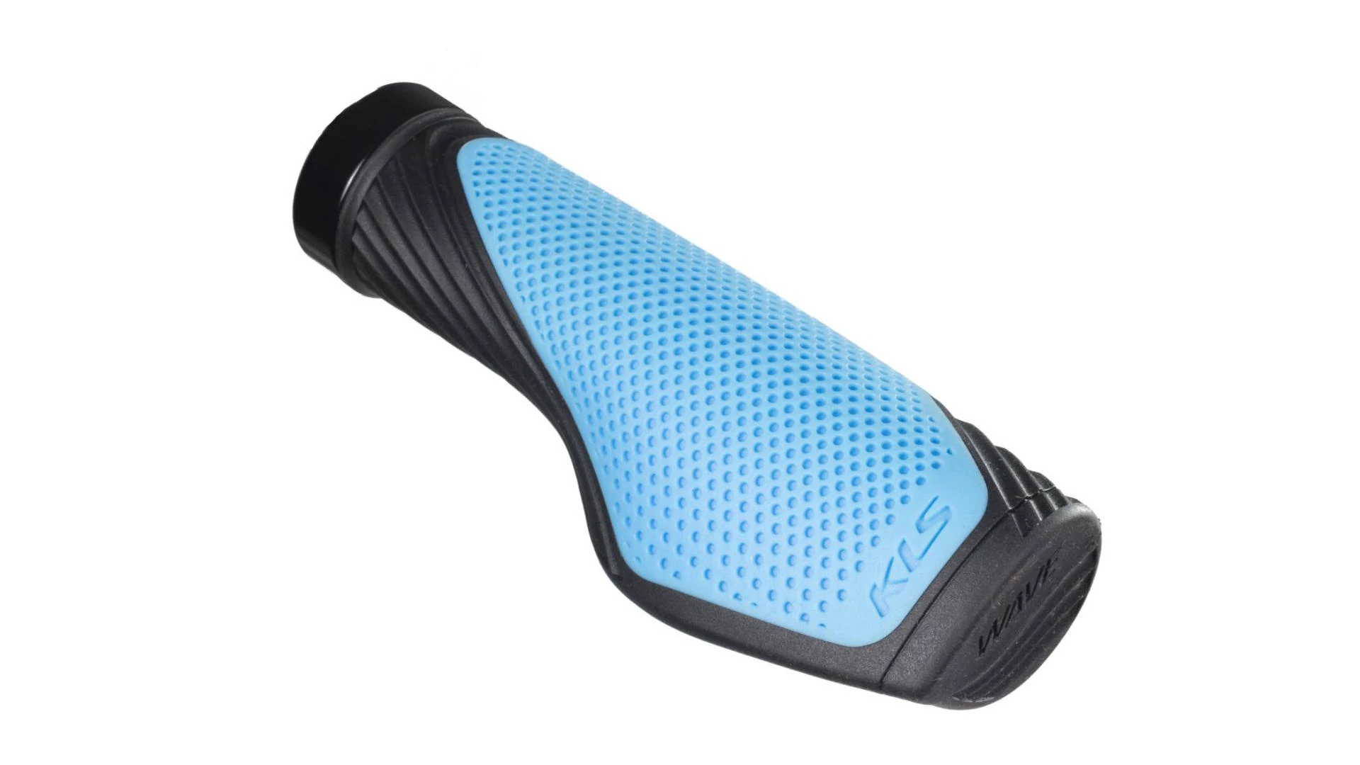 Ergonomikus kerékpáros fogantyú, csavaros, kraton anyagú, 135 mm, fekete-kék színű