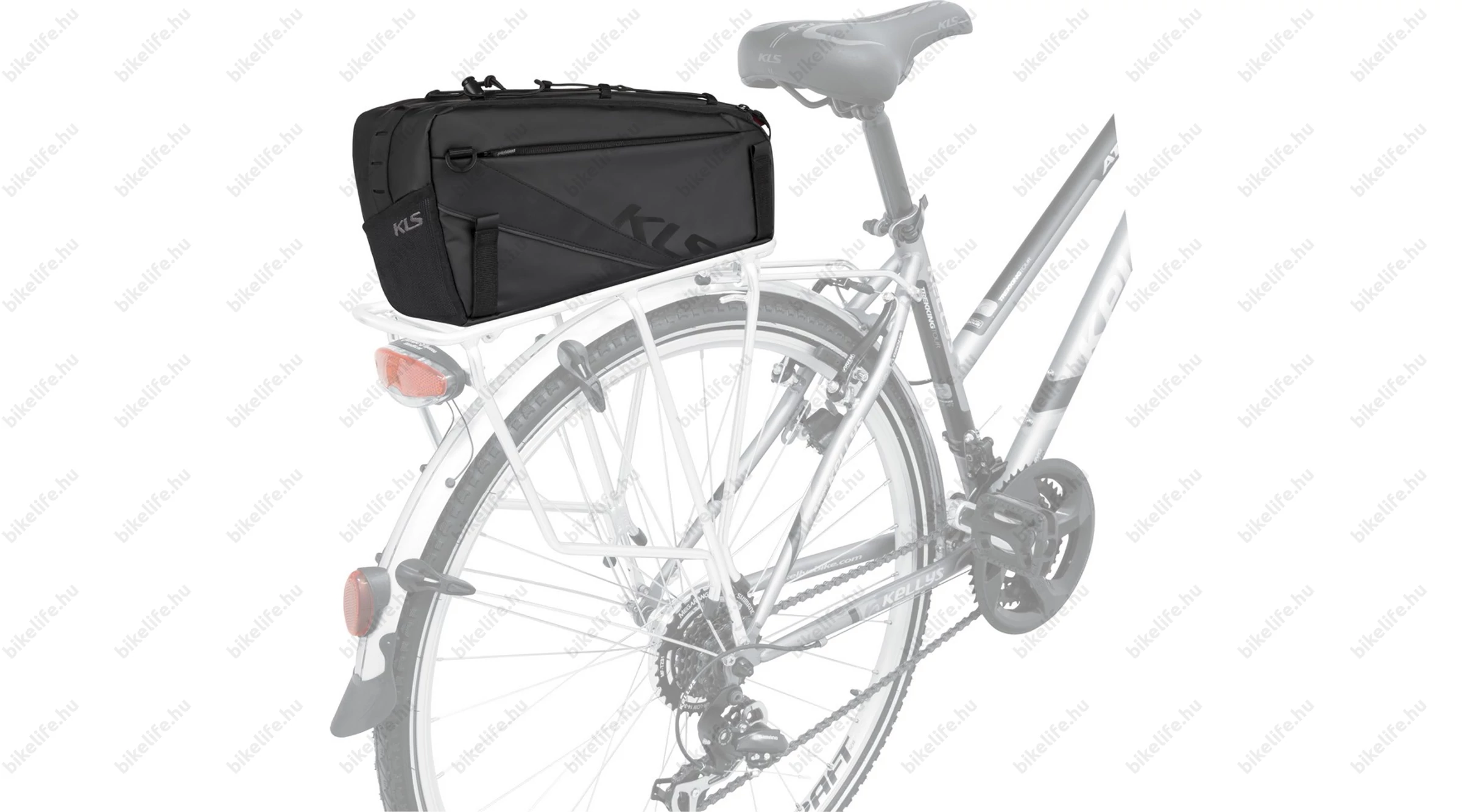 A KLS SPACE 10 hátsó csomagtartóra rögzíthető táska az ellenálló és vízálló Tarpaulin anyagból készült. A táska hátsó része fényfonalakból készült, amelyeket USB tölthető akkumulátor táplál, amely akár 4 órát is kibír. A táskának egy fő része és két oldalsó zsebe van a gyors hozzáférhetőség érdekében. A hatpontos tépőzáras rögzítés lehetővé teszi a gyors rögzítést a legtöbb típusú hátsó csomagtartóhoz. A KLS SPACE 10 táska űrtartalma 10 liter és a táska része egy lecsatolható vállpánt.