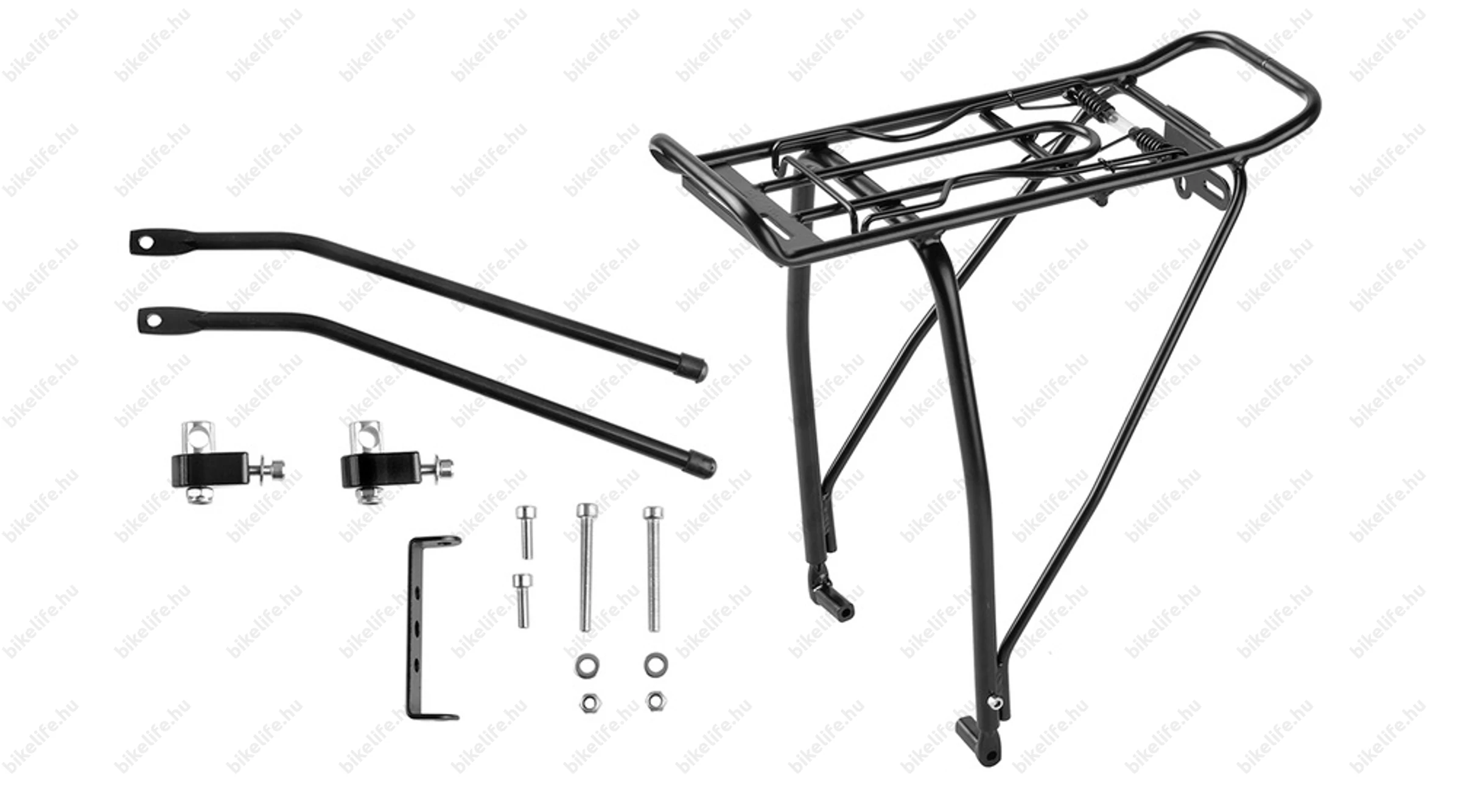 A termék nem tartalmazza a felszereléshez szükséges csavarokat. Ennek oka, hogy kerékpár modellenként elétrő lehet a csavarok hossza és átmérője.