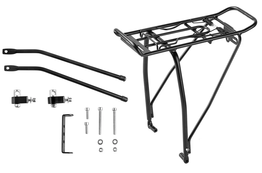 Széles körben állítható középkategóriás alumínium csomagtartó MTB, cross vagy trekking, 24-es illetve 29-es kerékpárokra. Rugós csappantyúval, tárcsafék kompatibilitással és hátsó lámpa tartóval rendelkezik. Szerkezete miatt inkább rövidebb túrákra, kirándulásokra ajánljuk, felső csomagtartó táskák szállítására optimális. Két vagy háromrészes túratáskák illetve gyerekülések alá inkább a hárompálcás verziókat ajánljuk. Függőlegesen állítható, 24-29"-os kerékpárokra alkalmas. 25 kg-ig terhelhető.