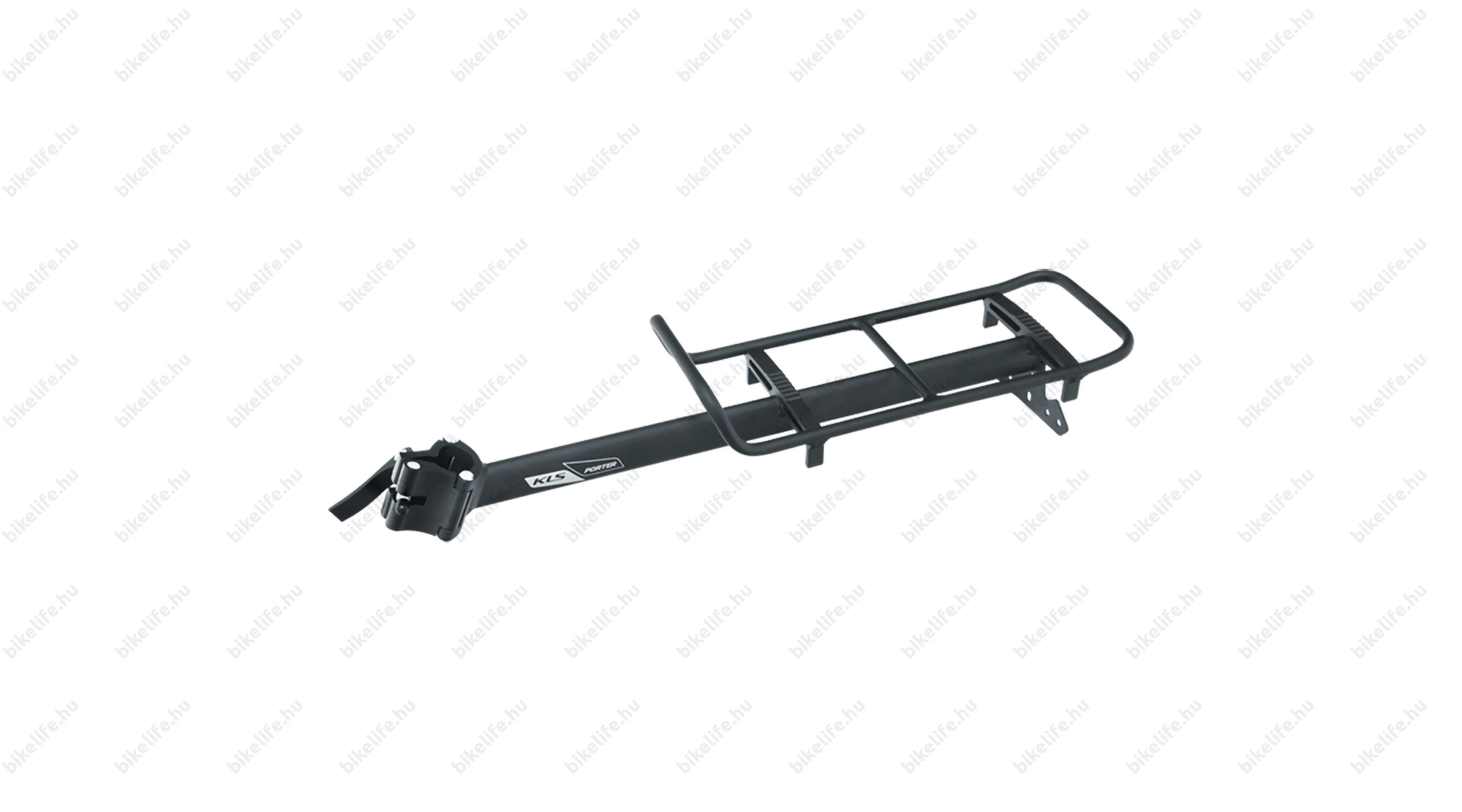 Nyeregcsőre szerelhető alumínium csomagtartó, gyorszáras rögzítés, 10kg teherbírás