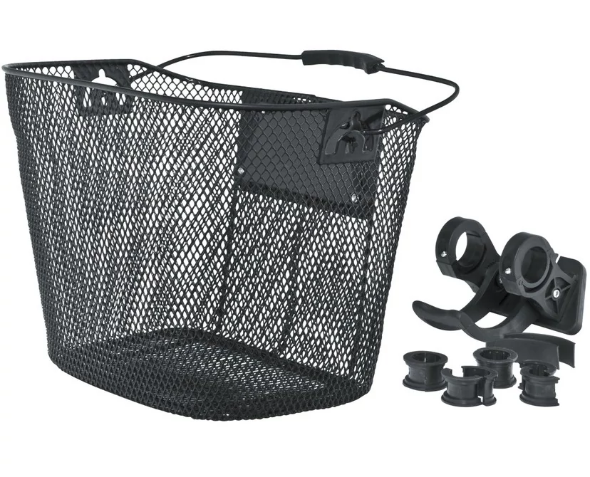 Klasszikus formájú első kosár gyorsrögzítéssel. Mivel kormányra rögzíthető így szinte kivétel nélkül minden kerékpárral kompatibilis. Általában az első lámpa sincs útban. A gyorsrögzítő adapter a sztenderd 25,4mm-es befogó átmérőjű (ami a széleken 22mm) kormányokhoz alkalmas.