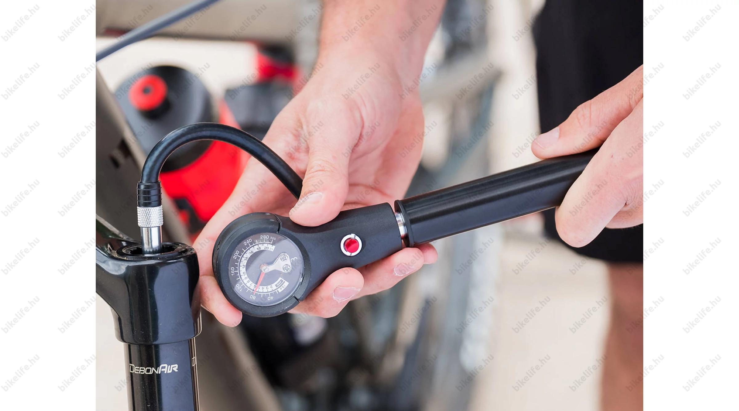 Töltsd fel a gumit és a felfüggesztést. A Dualpressure ezt magas és alacsony nyomású opcióval is megteszi. A mérőműszer és a nyomásleeresztő egyaránt megkönnyíti a kívánt nyomás elérését. Biztosítsa a megfelelő nyomást a gumiabroncsban, és a megfelelő felfüggesztést minden út során!