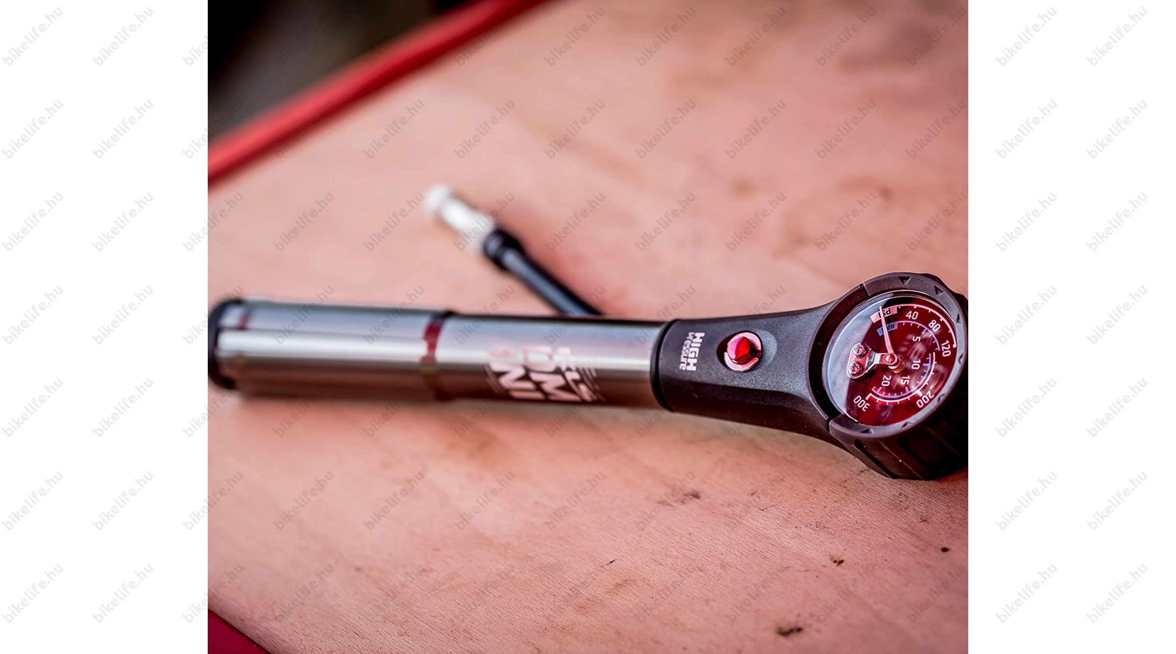Azt, hogy éppen tömlőt szeretnél pumpálni vagy teleszkópot, a pumpa alján tudod beállítani. Ez a kétfokozatú mechanizmusának köszönhető: magas nyomás/ nagy űrtartalom. A maximális nyomása 300 psi, ami 20 bar-nak felel meg.