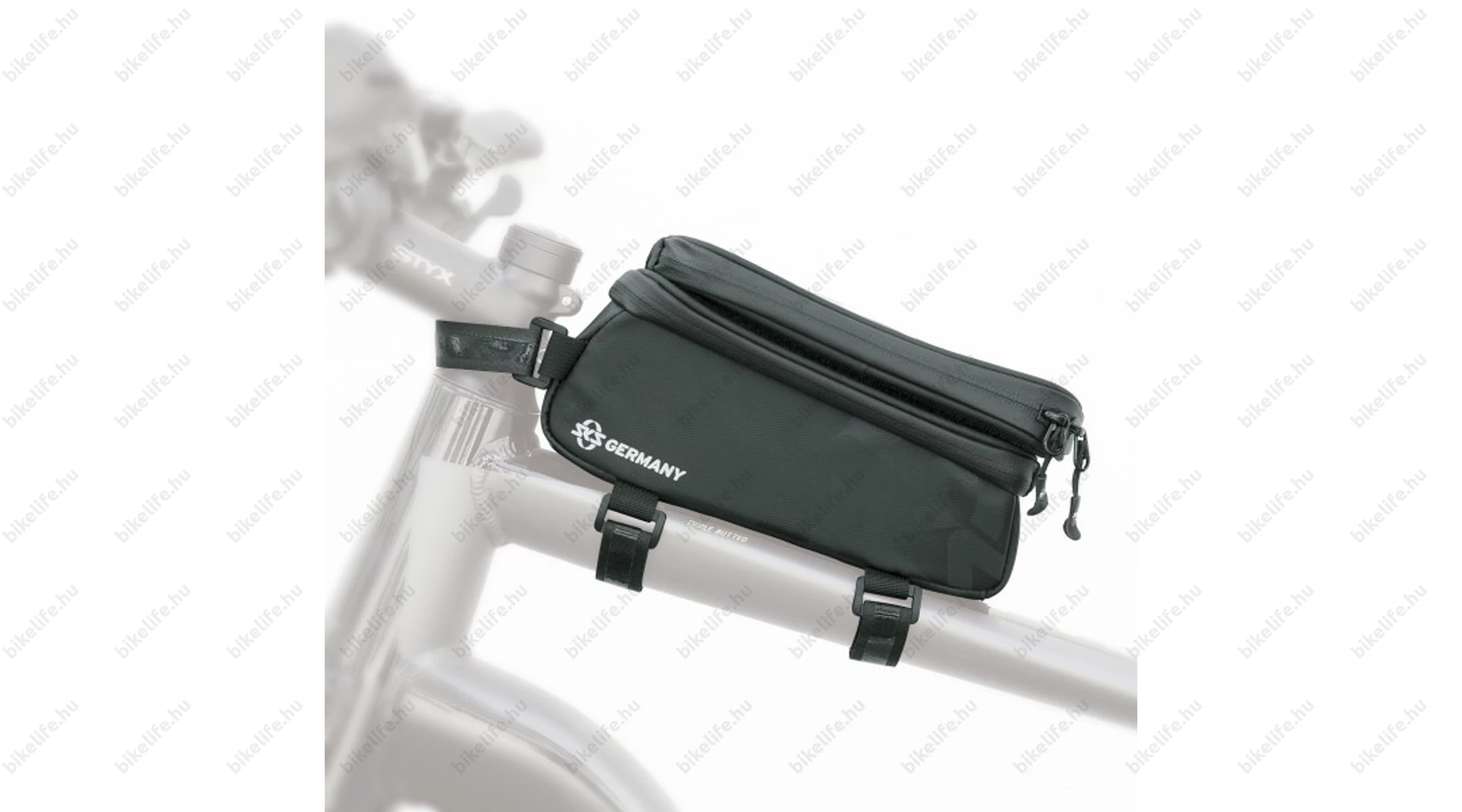 A vázra tépőzárral rögzül, aminek a belső felülete szilikonos. A szilikon felülettel kiküszöbölték a tépőzáras táskák egy hibáját. Nem mozdul és nem fordul el. Akkor is stabilan a helyén marad, ha benne a telefonod és teletömted a táskát.