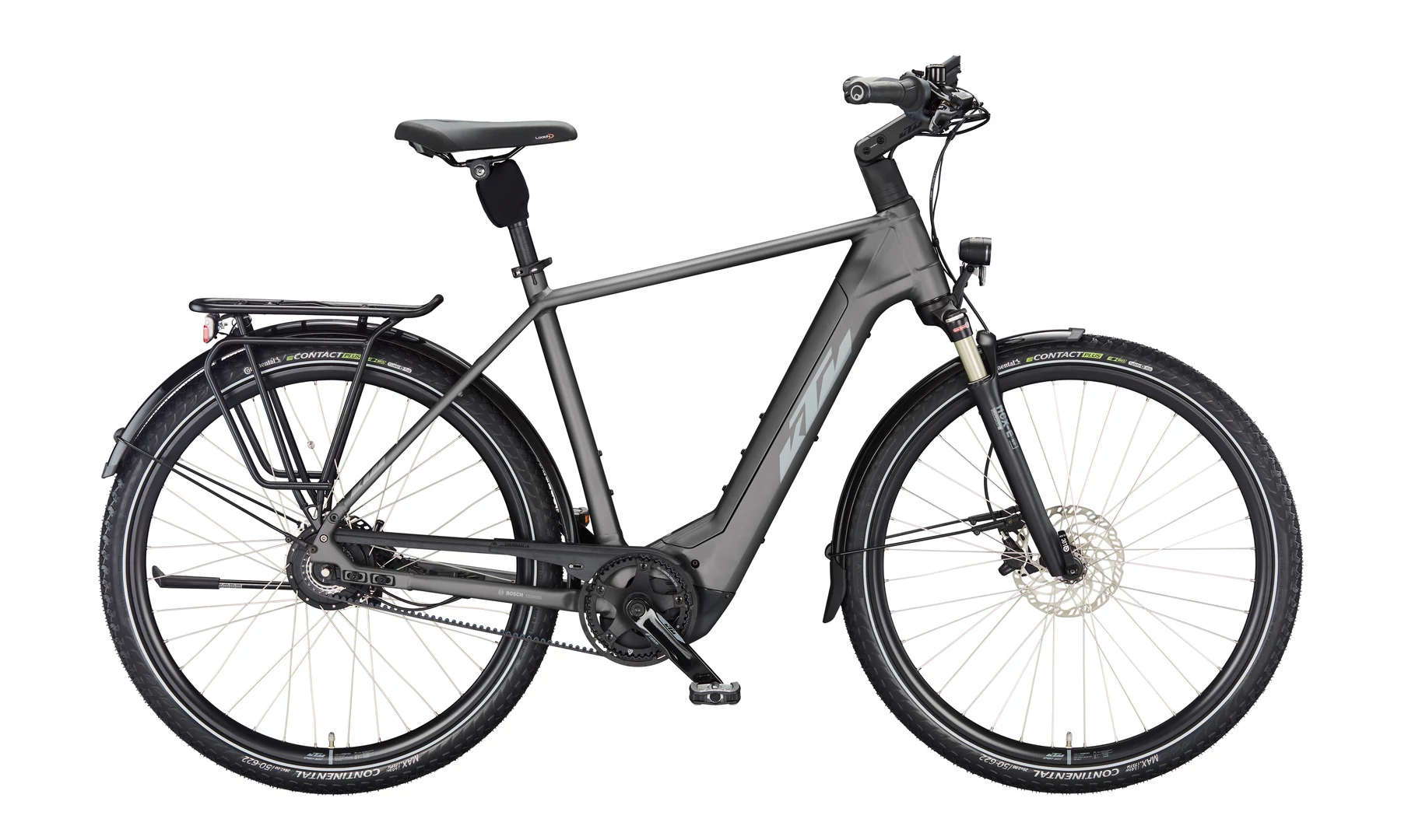 Gumiból a német Continental e-Contact Plus köpeny került a kerékpárra 50mm-es szélességben. Szélessége okán kényelmes, a mintázata pedig tökéletes aszfaltos túrákhoz. Ez is szintén egy az eBikeok igénybevételéhez fejlesztett darab. A Plus defektgátló réteggel a futófelületi defekt esélye, szinte nulla.