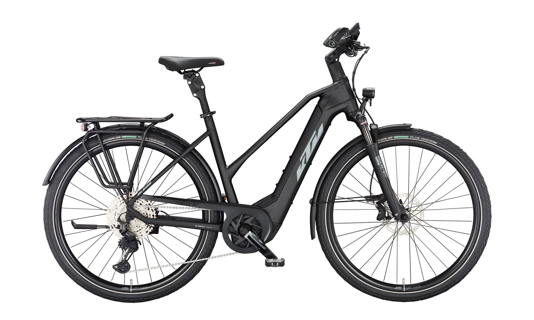 Gumiból a német Schwalbe Energizer Plus Perf. GreenGuard köpeny került a kerékpárra 50mm-es szélességben. Szélessége okán kényelmes, a mintázata pedig tökéletes aszfaltos túrákhoz. Ez is szintén egy az eBikeok igénybevételéhez fejlesztett darab.