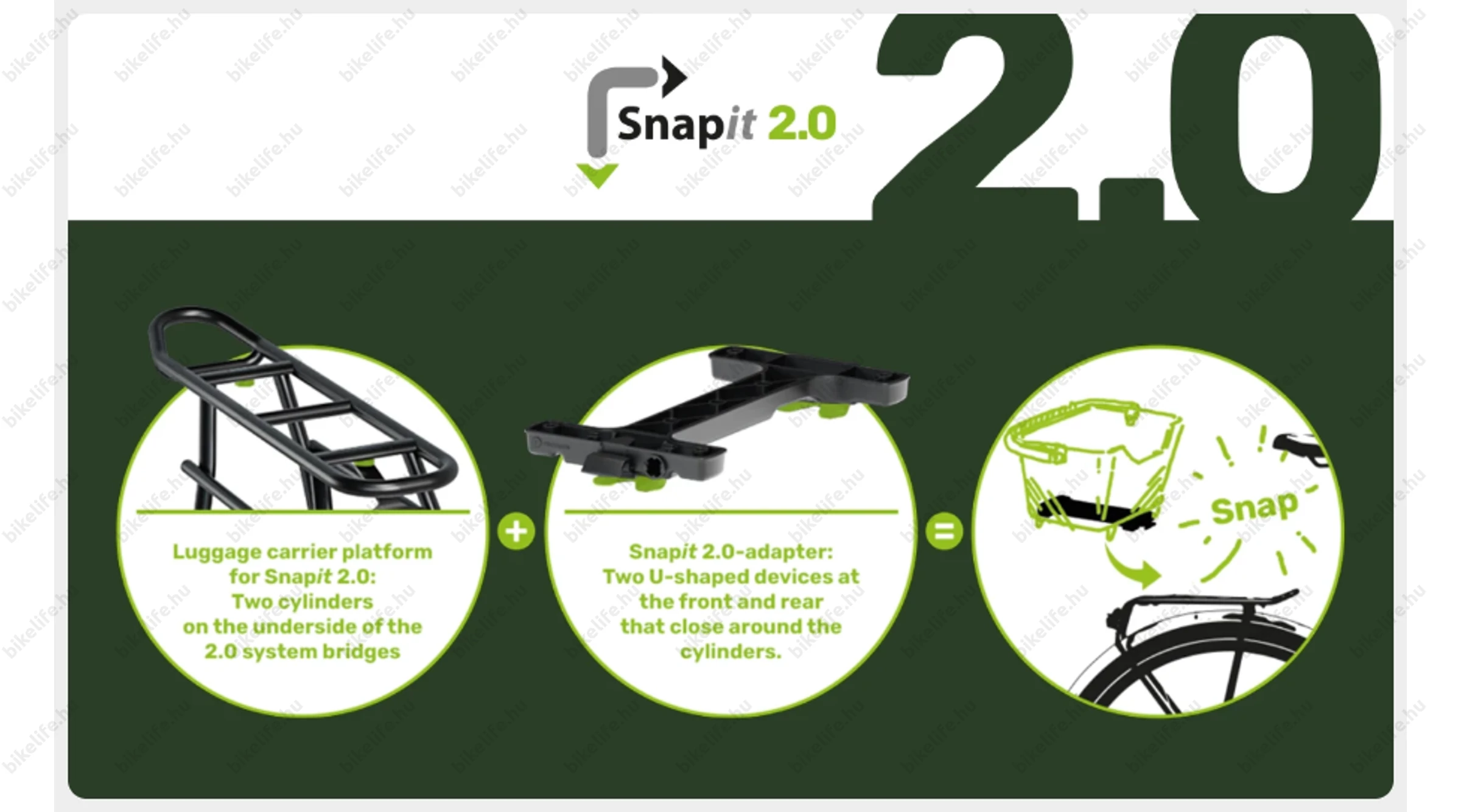 Ahogy azt a képeken is megtekintheted, előre szerelt adapterlappal kapod meg a táskát, tehát nincs szükséged megvenni hozzá külön az adaptert, hogy fel tudd szerelni Racktime Snap-It 2.0 csomagtartódra.