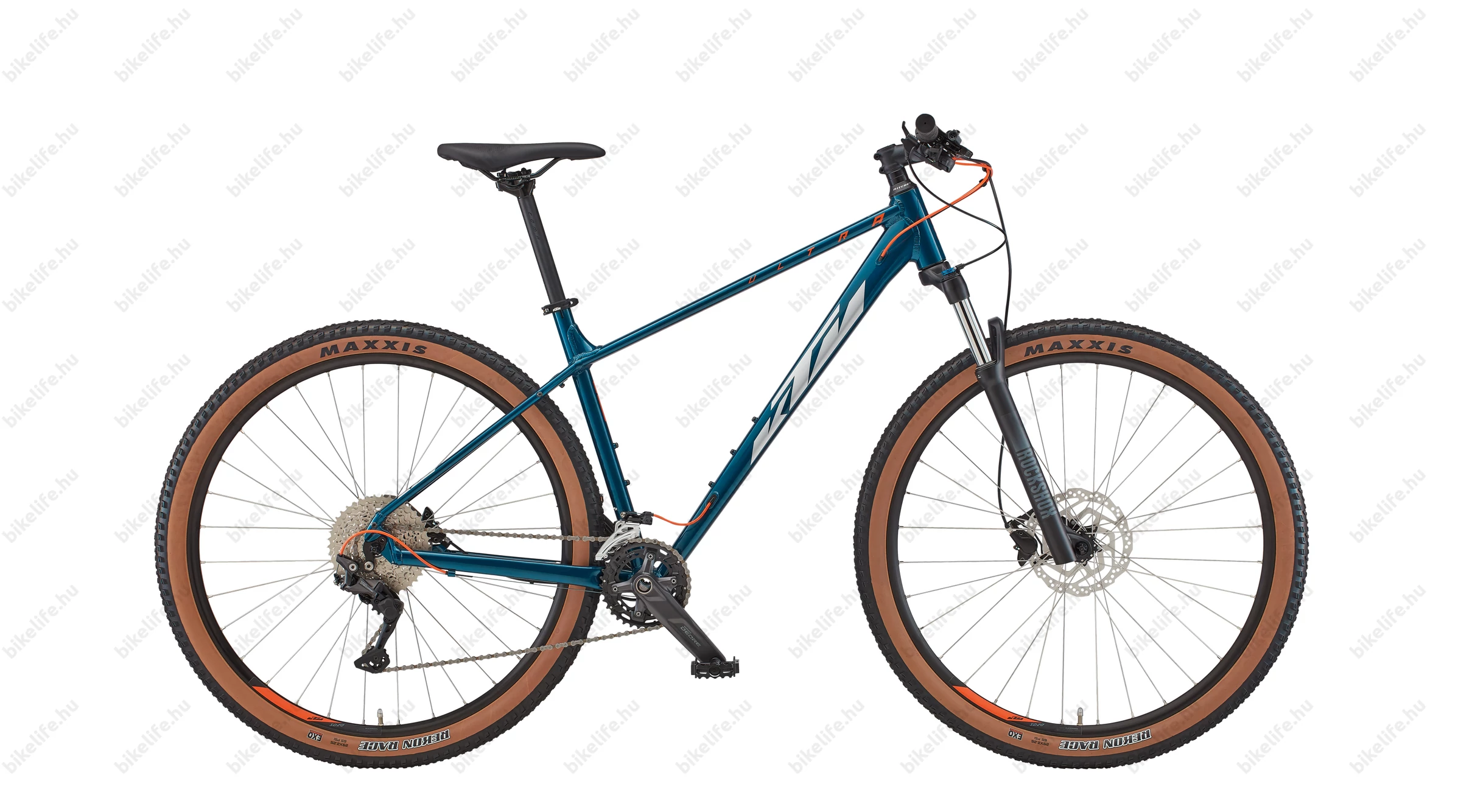 A KTM-től jól megszokott módon saját márkázott Ryde felniket fűznek Shimano agyak köré rozsdamentes küllőkkel. A Ryde szegecselt abroncsai elég sok nyüstölést bírnak deformálódás nélkül. A Shimano agyak pedig kiválóan gurulnak, és a rendezett szervizháttér miatt még 10 év múlva is tudsz cserélni benne golyókat és kónuszt. Szinte örökös darabok.