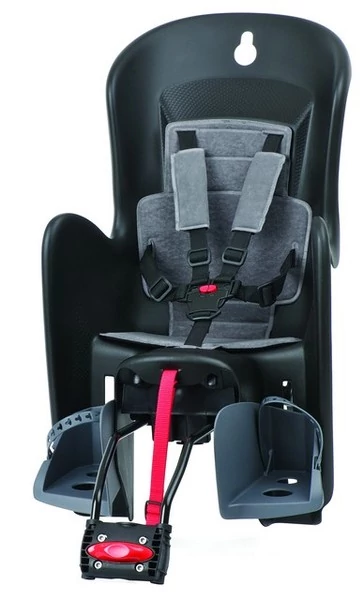 Adapterrel szerelhető fel.Lehetséges, hogy egy plusz adapter segítségével több kerékpárt is alkalmassá tegyünk az ülés fogadására. Az adapter felszerelhető kerek és ovál vázcsövekre egyaránt 28mm-40mm csőátmérőig. A gyermek kerékpározáskor hátul helyezkedik el a kényelmes ülésben.Az ülés magasított párnázott háttámlával rendelkezik amely védi a gyermek nyakát, fejét . A háttámla kialakítása helyet biztosít a sisaknak is. 5 ponton záródó biztonsági öv, állítható övrendszer. A gyerekülés állítható lábtámasz. Egyszerűen, külön szerszámok nélkül felszerelhető,sötétszürke/narancs, kék/ezüst,piros/sárga színben vásárolható. A szállítható gyermek súlya:9-22 kg.