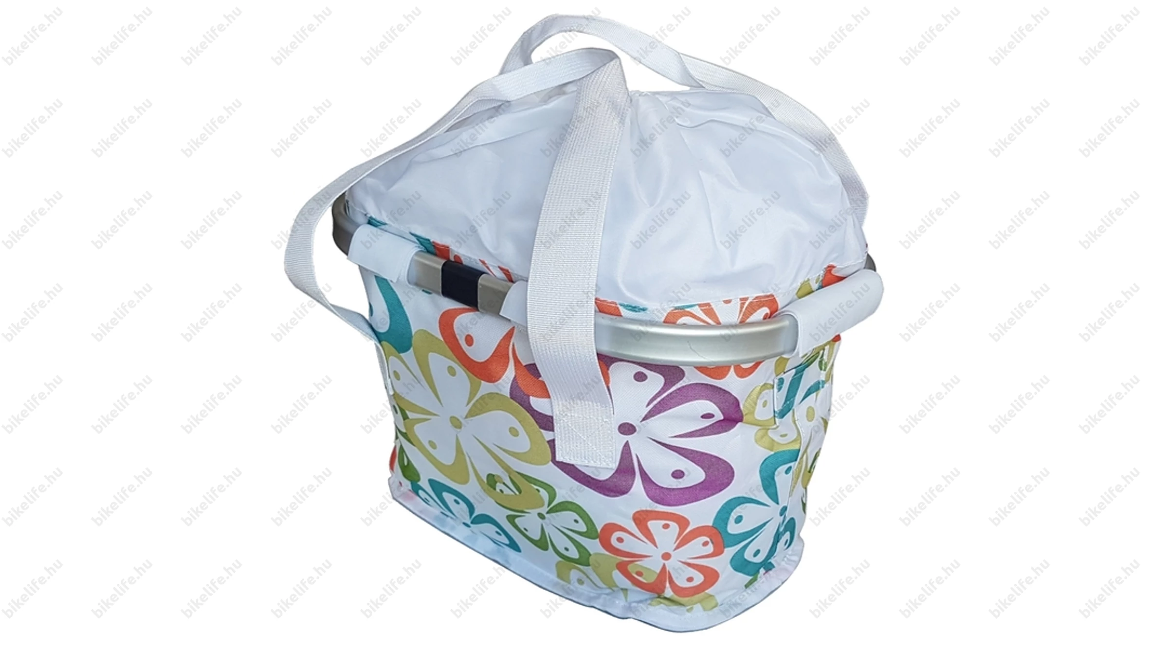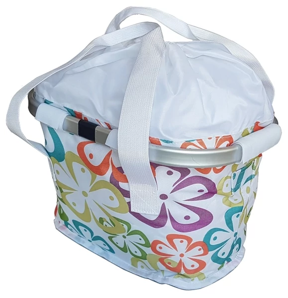 Levehető első kosár kerékpárokra, vidám virágos pöttsös dizájnal