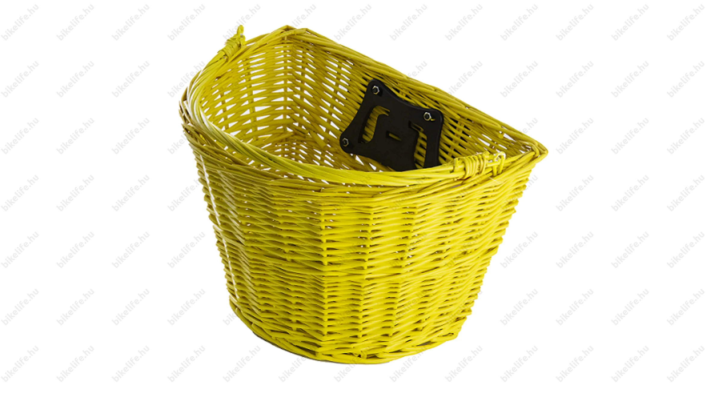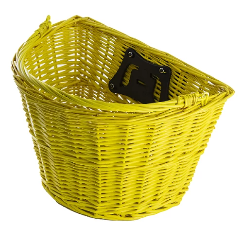Előre szerelhető, gyorsrögzítős kosár, rattanból készült, sárga színű, 5 kg teherbírású