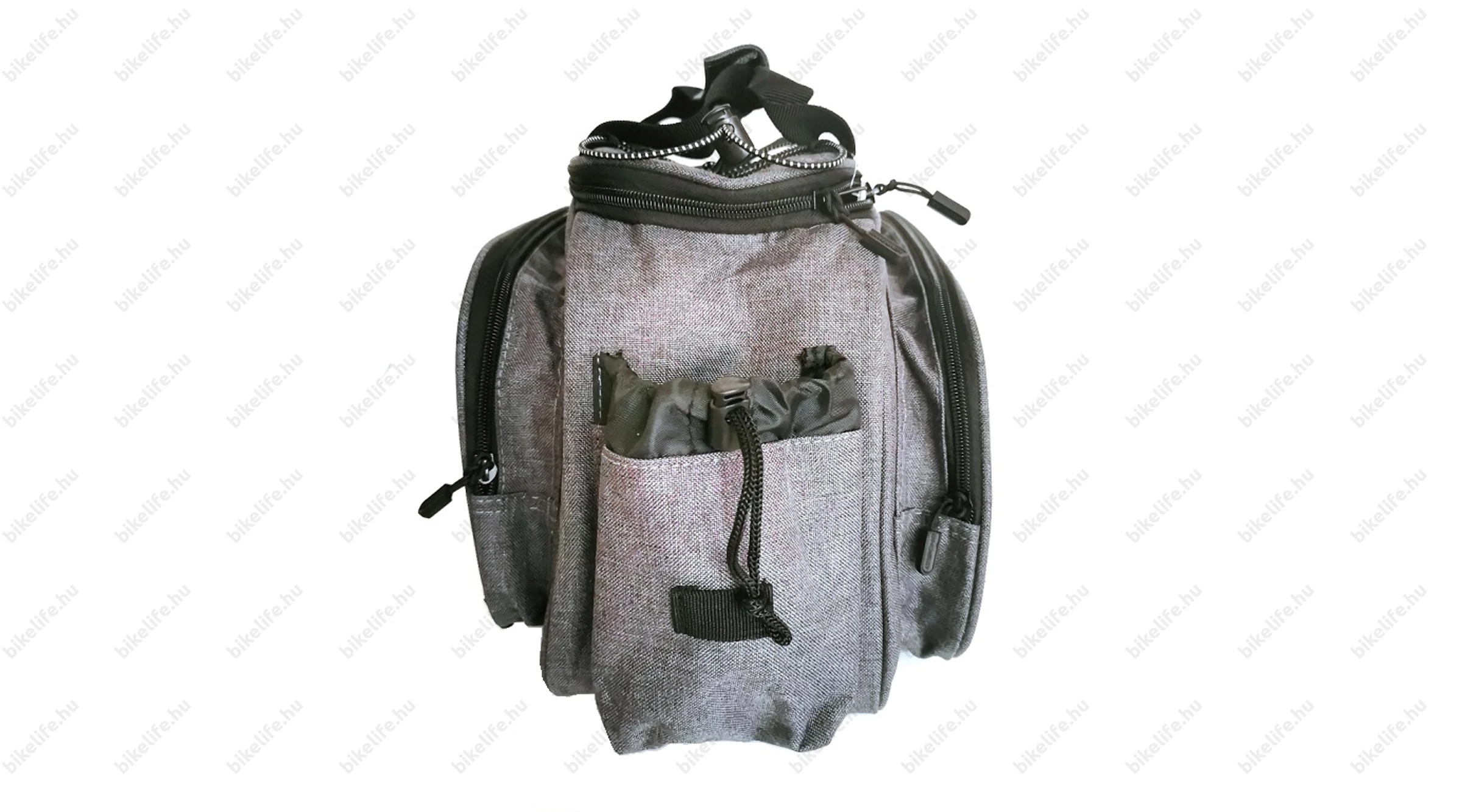 A táska hátulján egy összehúzható kulacstartó zseb található, a zseben pedig egy kis villogótartó fül. Mindkét oldalon fényvisszaverő mintázat borítja a zsebeket, így a biztonságunkról is megfelelően gondoskodik az éjjeli kerékpározás során.