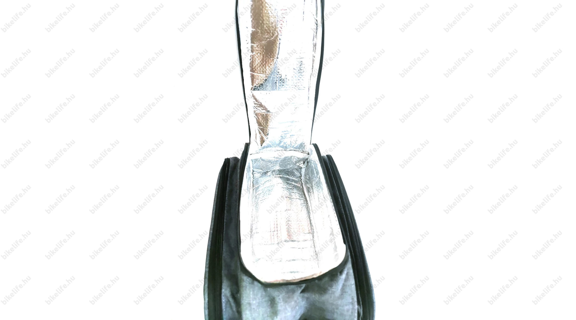 A középen található fő rekesz 10 literes űrtartalommal rendelkezik és thermo béléssel van ellátva, ezáltal télen-nyáron kiváló útitársunk lehet! Egy egyszerű városi kerékpározás során bőven elegendő lehet ez az egy rekesz, egészen sok holmit képes elnyelni, így például egy bevásárlás alkalmával is segítségünkre lehet. A táska tetején található 2 db fülnek (melyek egy tépőzáras fogófül segítségével összekapcsolhatóak) köszönhetően könnyedén magunkkal vihetjük. Ezalatt a fül alatt található egy gumírozott zsinóros rész, ahová egyszerűen "beszoríthatunk" akár egy bukósisakot, pulóvert, vagy bármi egyéb holmit.