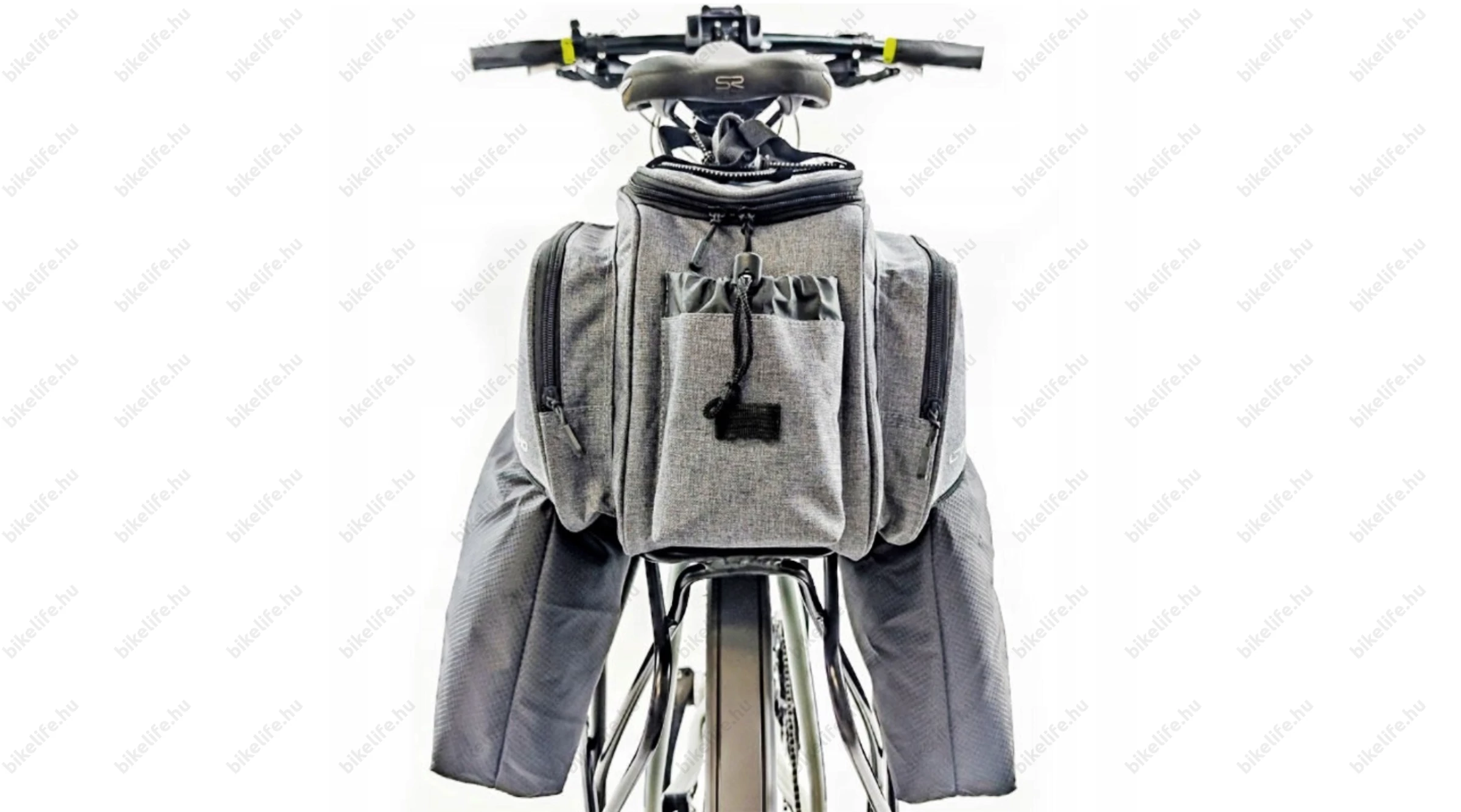 Hátsó csomagtartóra szerelhető 3 részes túratáska, 20 literes kapacitás, thermo bélés, esővédő huzat, szürke színű