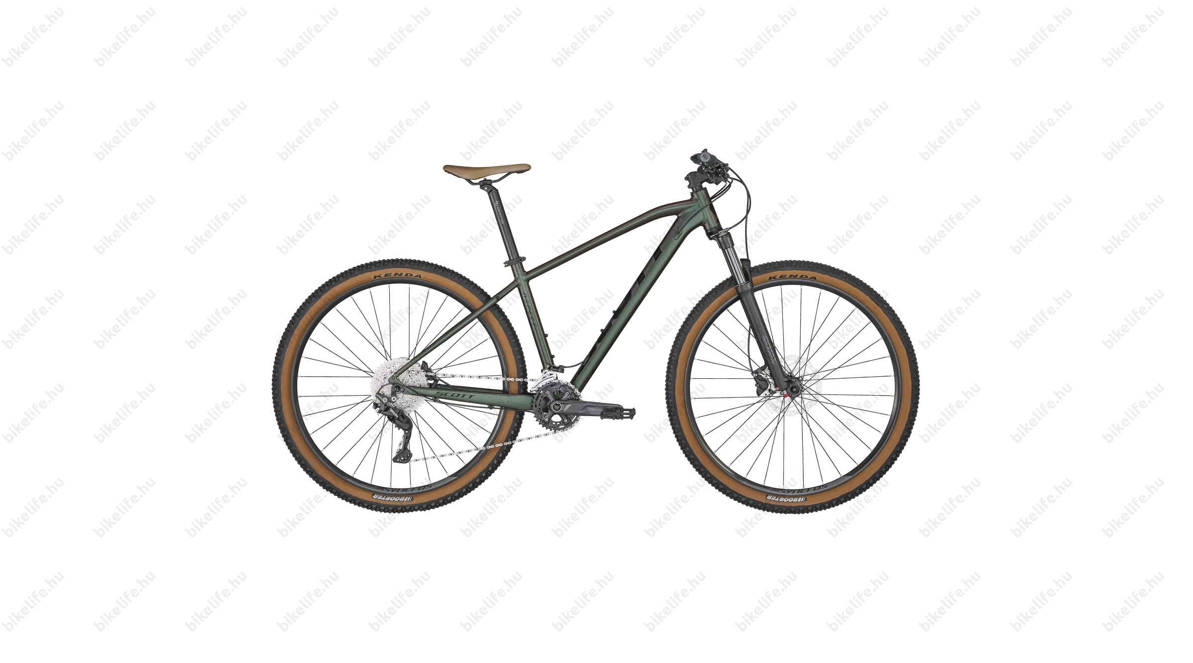 Mondhatni szintén egy megszokott összeállítás a Scott esetén. Formula agyak és saját márkás felnik rozsdamentes küllőkkel összefűzve. Jól karbantartható és erős kombinációt ad. Köpenyből a Kenda Booster került a bringára vegyes terepmintával kellően széles 2,4"-es kivitelben.