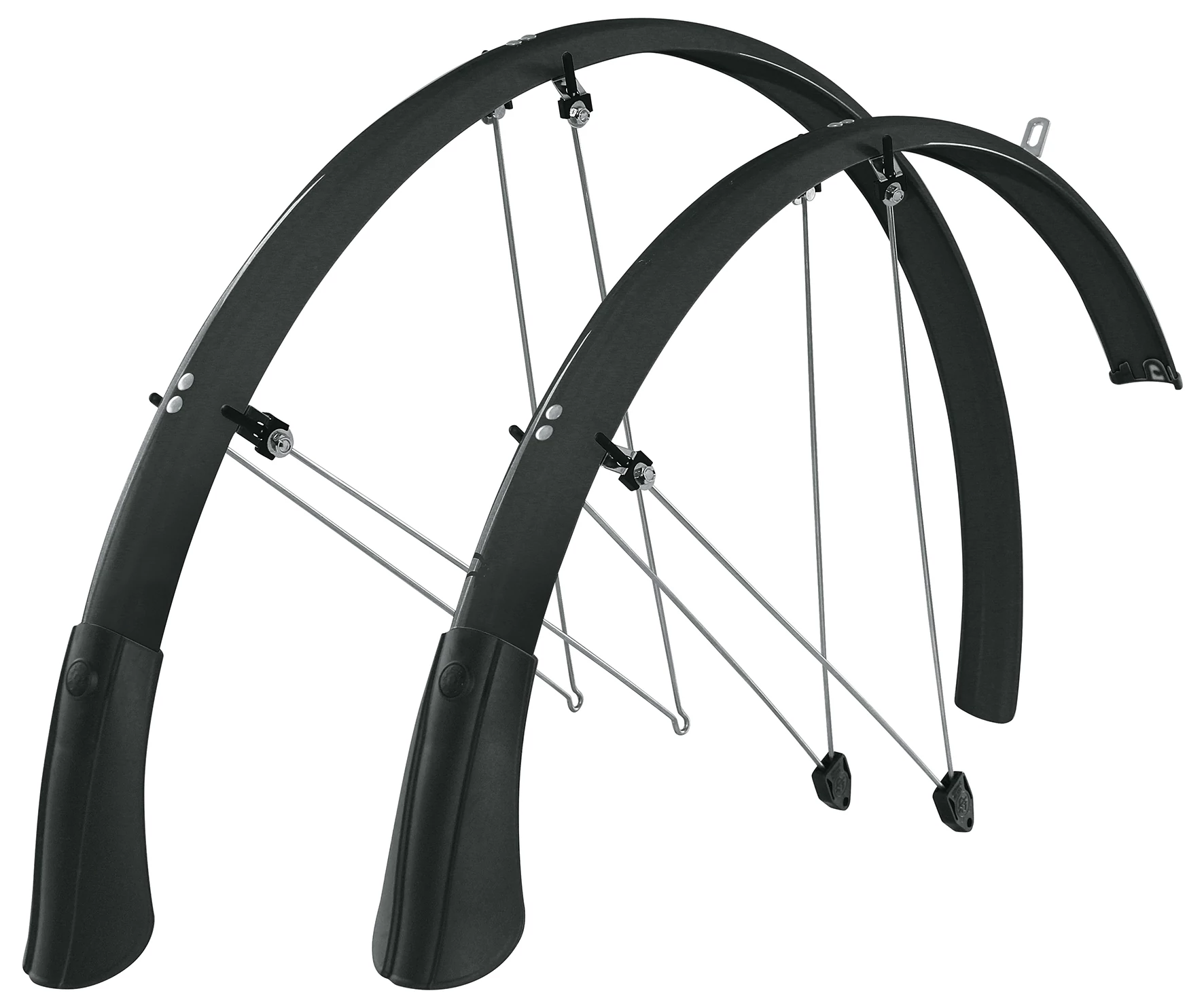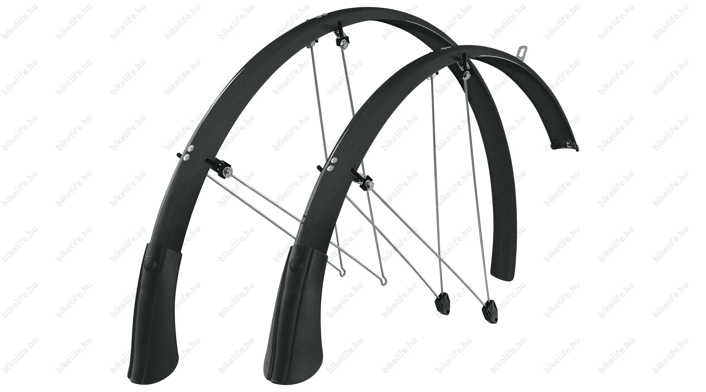 Az első sárhányó 20 cm-rel hosszabb, mint a gyárim volt, de esőben még nem tudtam tesztelni, hogy ráveri-e a cipőmre a vizet, vagy végre megvédi. A hátsó sárhányóra rá tudtam szrelni a gyári sárnyányról a macskaszemet, de ehhez is át kellett fúrnom.