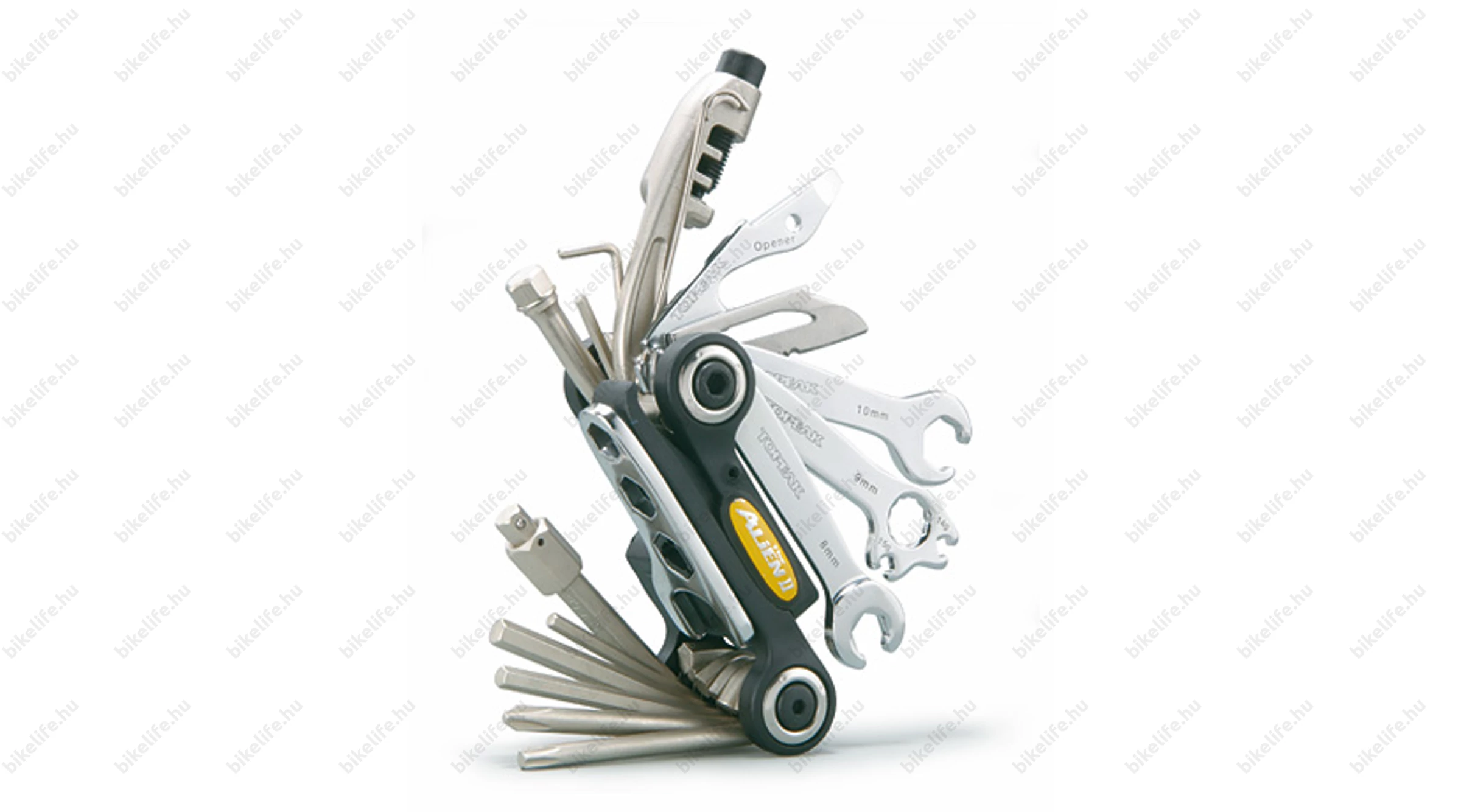 A rangos Reddot Award, illetve más zsűrik által többszörösen díjazott Alien II marokszerszám kettécsúsztatható, 31 funkciót biztosít,A díjnyertes, mindent megcsinált eszköz. A 31 funkciós szerszám könnyű, kétrészes testté hajtható össze – a tökéletes kerékpáros eszköz. Tartalmaz egy láncbontó szerszámot és egy tároló táskát.