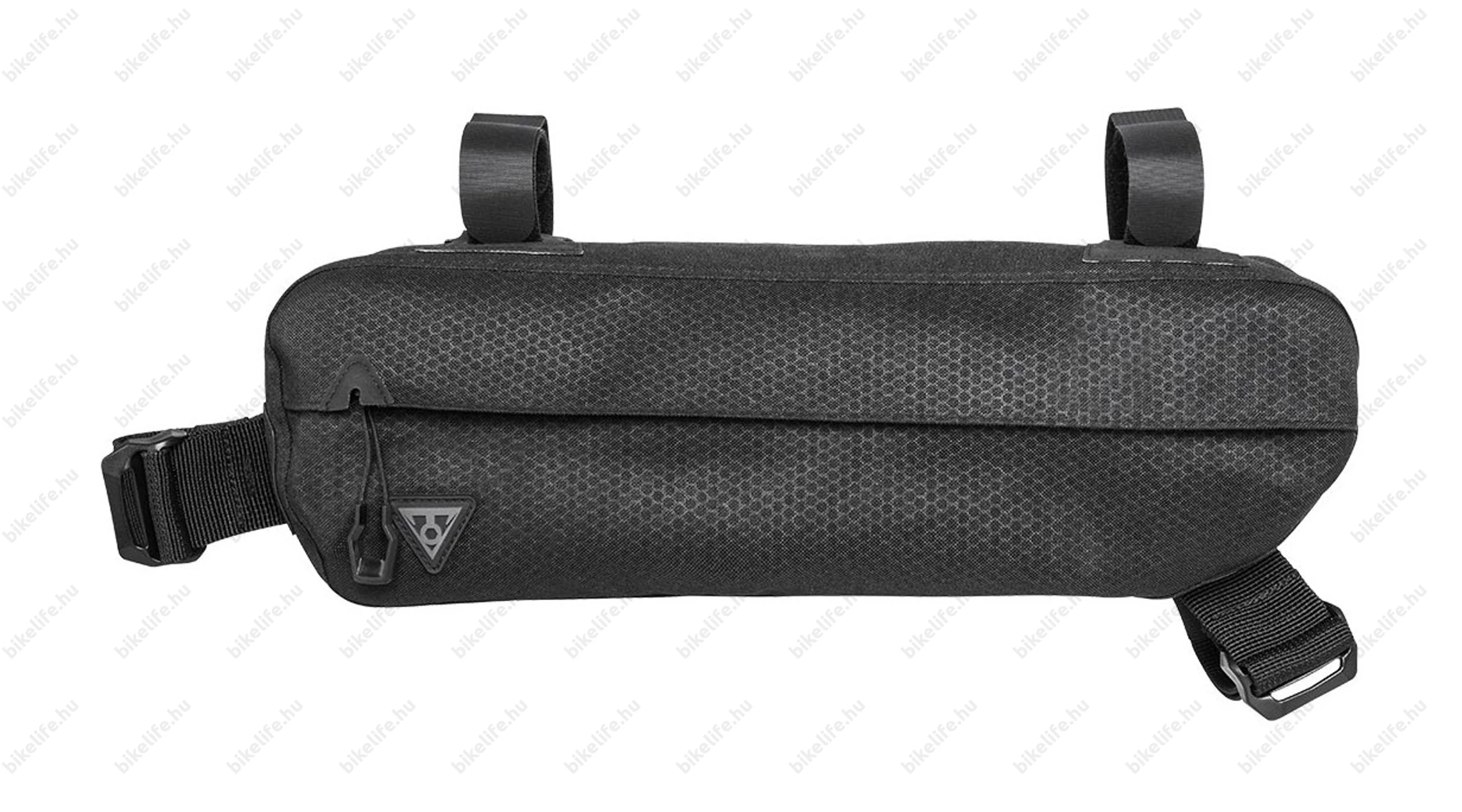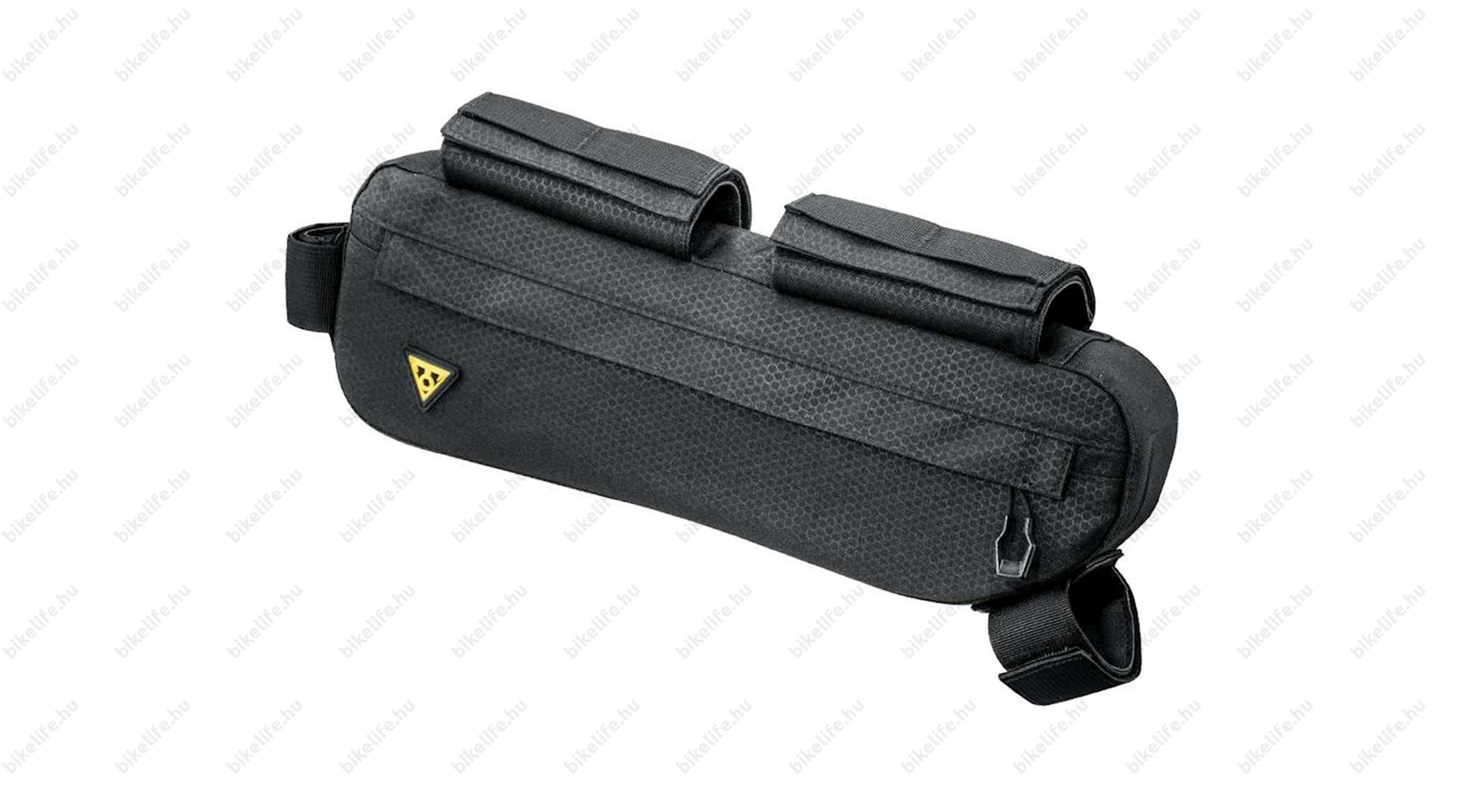 A felső két rögzítőpánt egy robosztus megerősített tépőzáras megoldással fixálható a felső vázcsőre. Az oldalsó hevederes kialakítású pánt a nyeregcső alatti vázcsőre rögzíthető, az alsó hevederes pánt pedig az alsó vázcsőhöz kapcsolódik. Ezáltal kap egy biztos és mozdulatlan fixálást a kerékpáron, mely nem fog elmozdulni terepesebb talajon sem, valamint 6,5 kg-ig terhelhető. Kapacitása 3 literes, tehát bőségesen elférnek benne a kisebb dolgaid, ami szeretnéd, ha kéznél lenne túrázáskor.