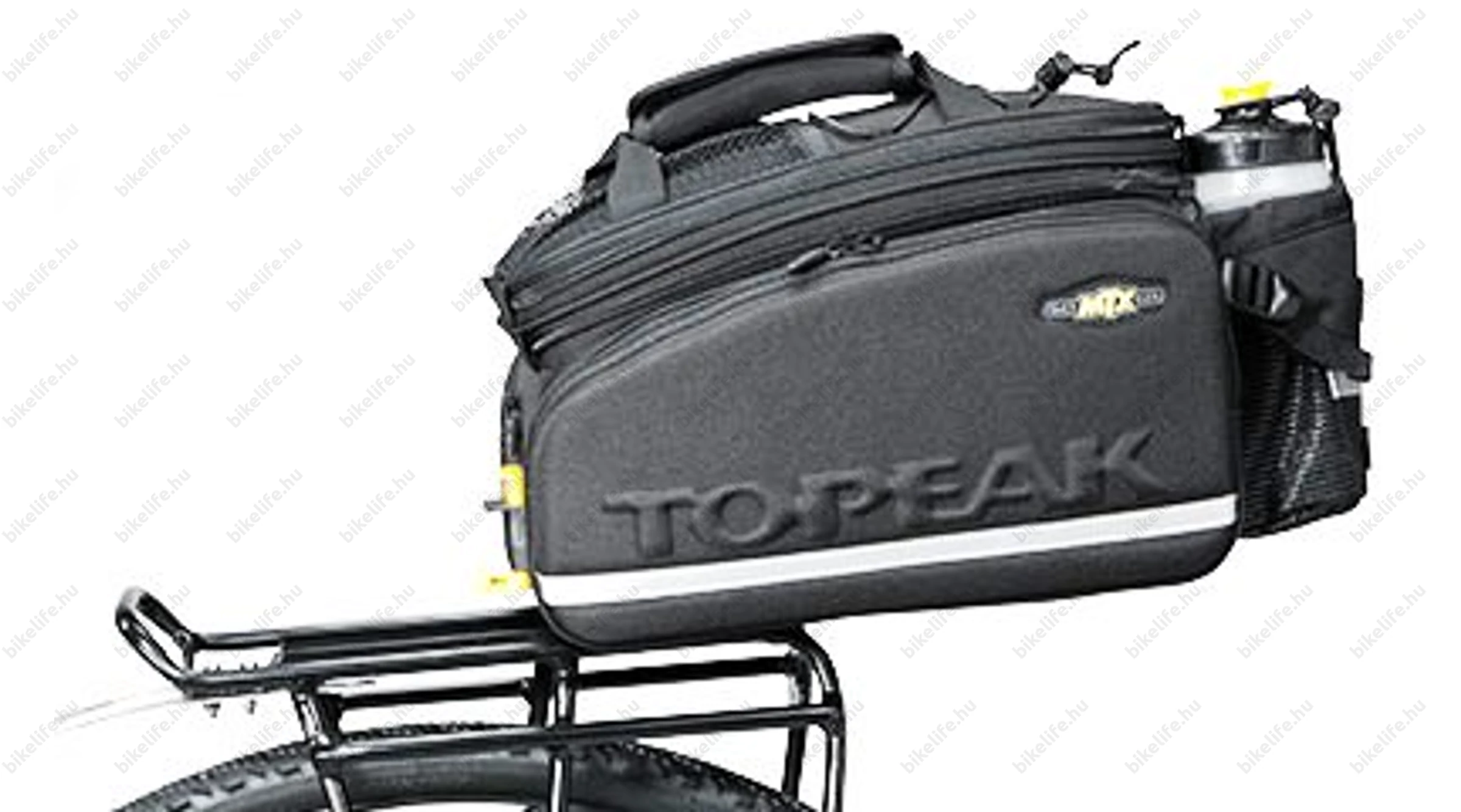 Ez az alumínium hátsó csomagtartó állítható lábakkal van felszerelve, így a legtöbb 24"-29" kerekű MTB és 700C tárcsafékes túrakerékpárhoz illeszkedik. Ezt a strapabíró csomagtartót nagy igénybevételű, hosszú távú túrákhoz tervezték. Az integrált oldalrúd táska rögzítési pontot biztosít, több helyet biztosítva a rakomány számára az csomaghordó tetején. MTX QuickTrack® kompatibilis bármely Topeak MTX TrunkBag-gel, MTX hátsó kosárral és a legtöbb rack-csomaggal és táskával a Topeak kínálatban.